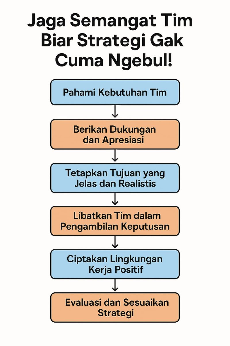 Hari ke 5 kita ngebut bahas Jaga Semangat Tim Biar Strategi Gak Cuma Ngebul di Sekolah/Madrasah/Pesantren! Strategi udah dirancang (Hari 3), udah dieksekusi (Hari 4), tapi kalau tim guru, ustadz, sama komite pada lemes kayak santri abis ngafal 10 juz, ya ambyar!
